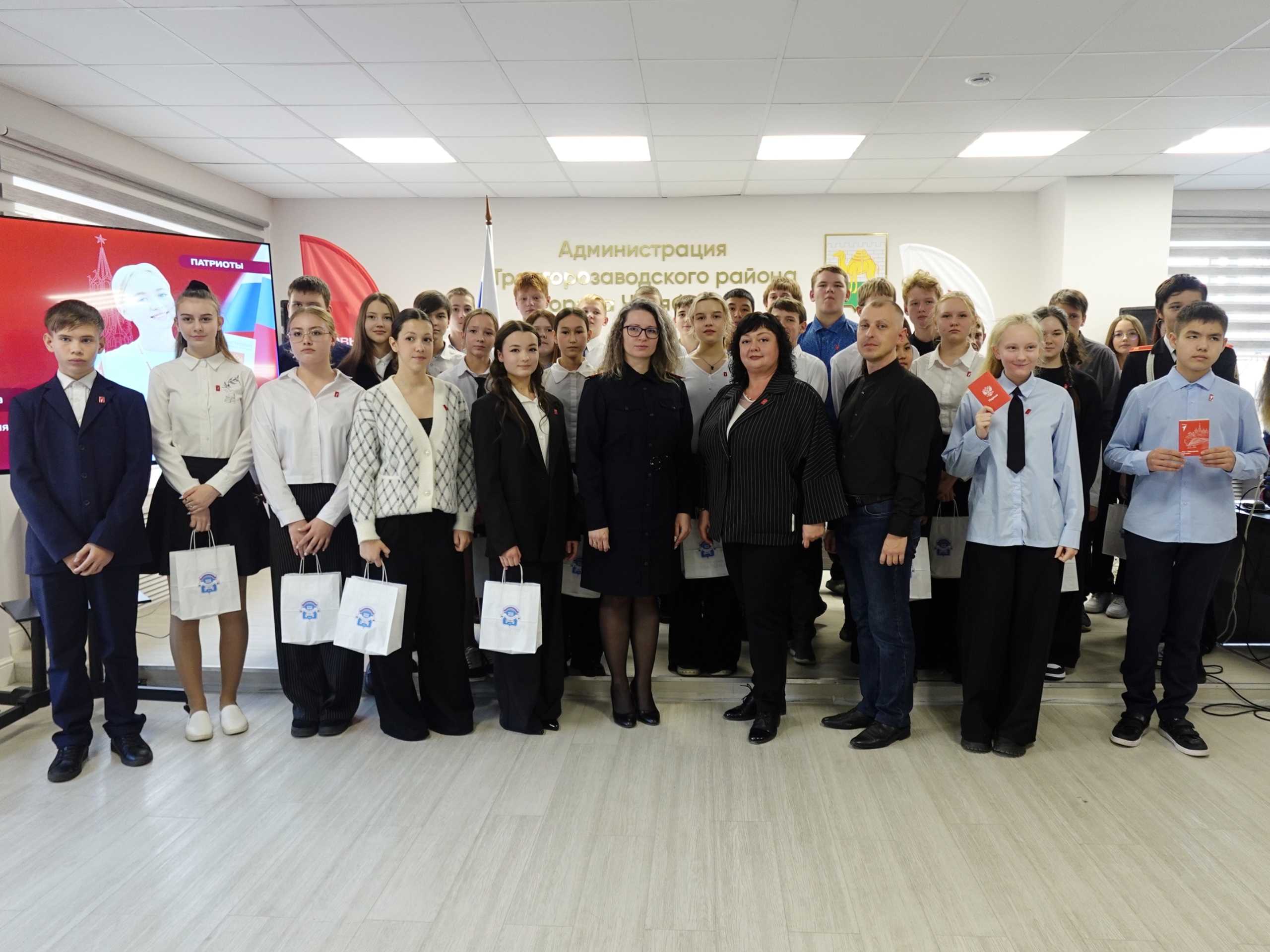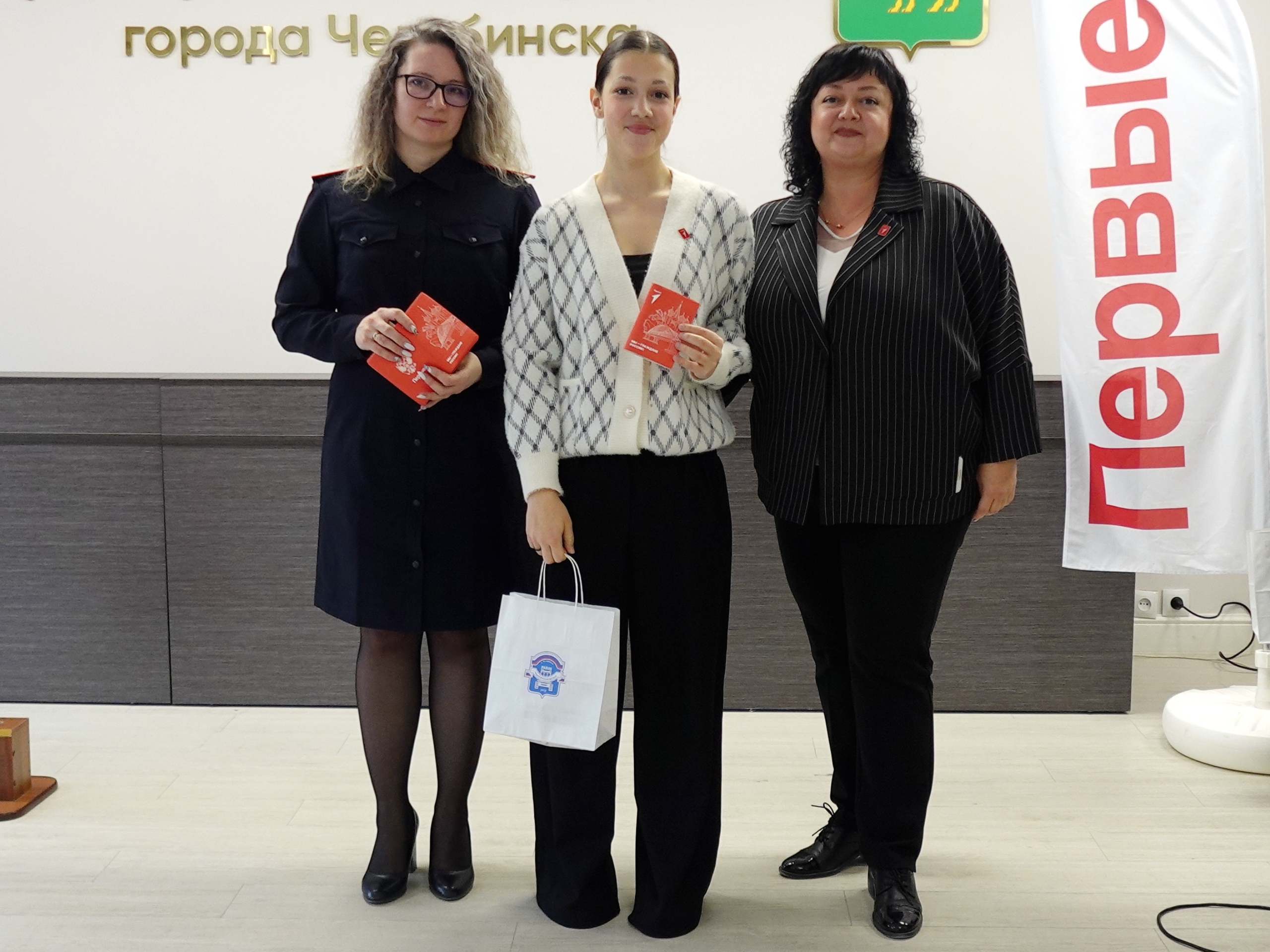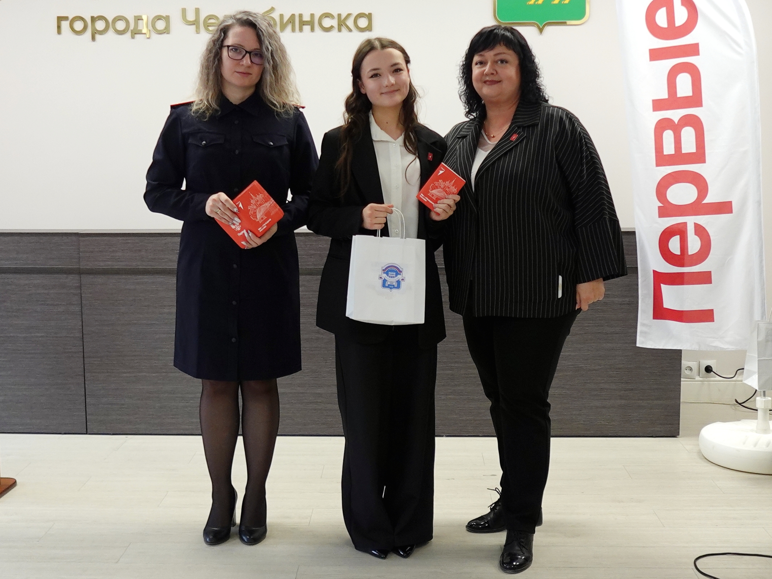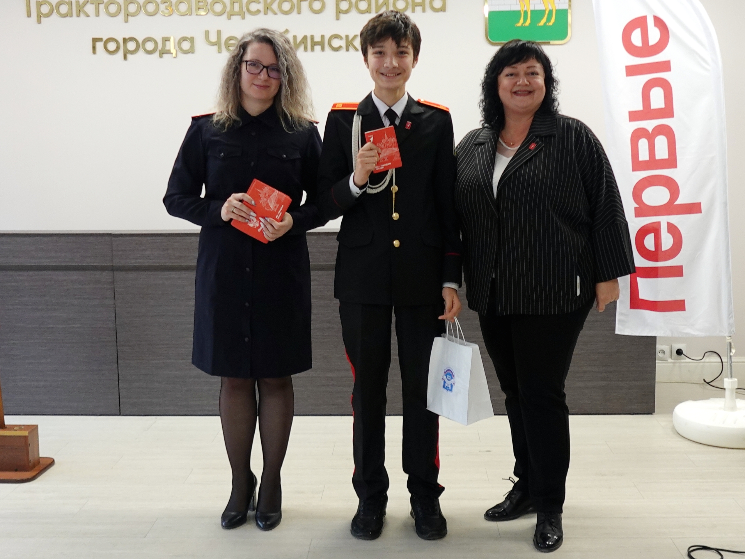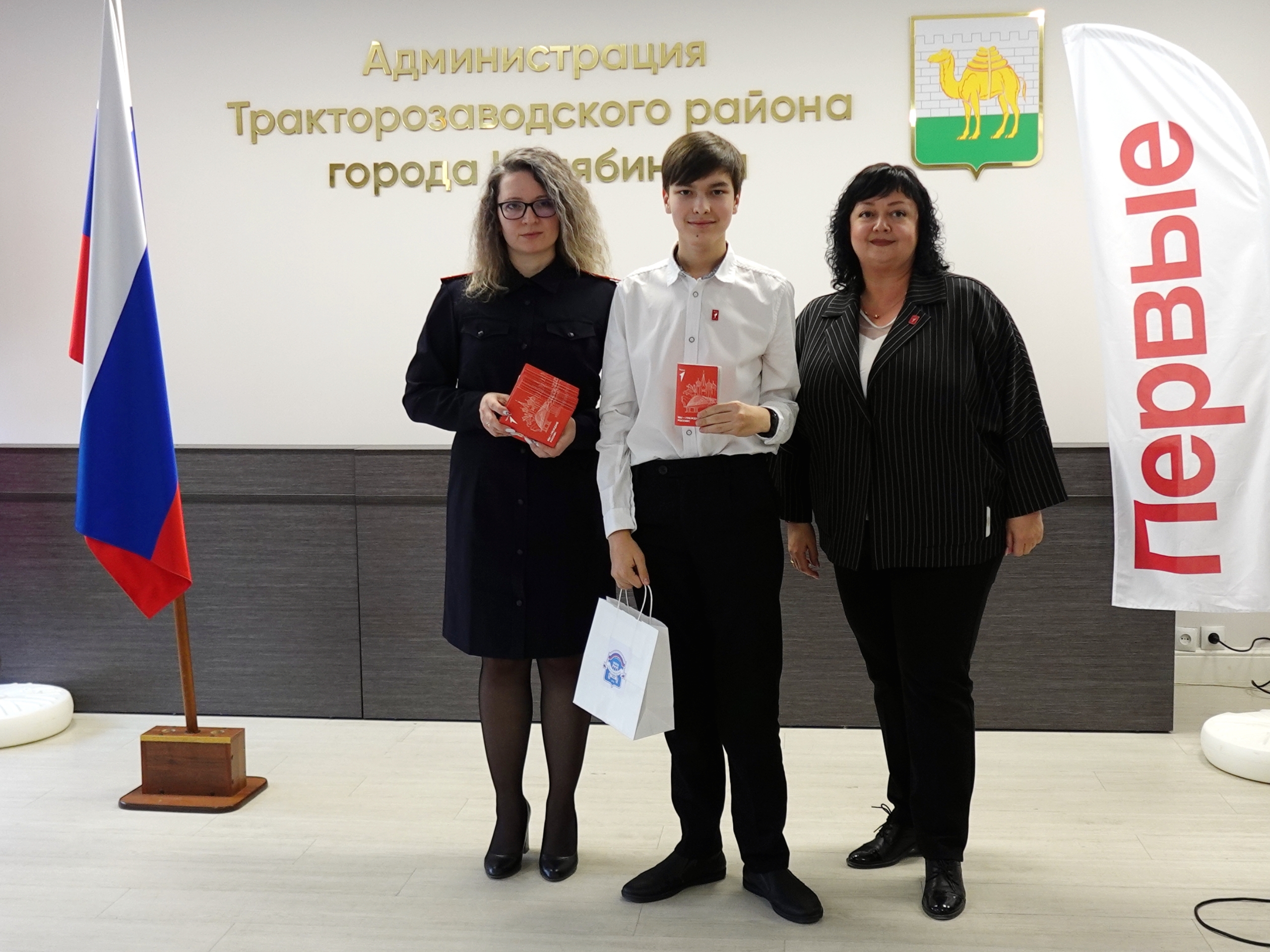 Елена Сергеевна вместе с заместителем начальника отдела по вопросам миграции Отдела полиции «Тракторозаводский» УМВД России по г. Челябинску Ксенией Амелиной вручила паспорта гражданина РФ и памятные подарки от Администрации района юным тракторозаводцам, которым исполнилось 14 лет.