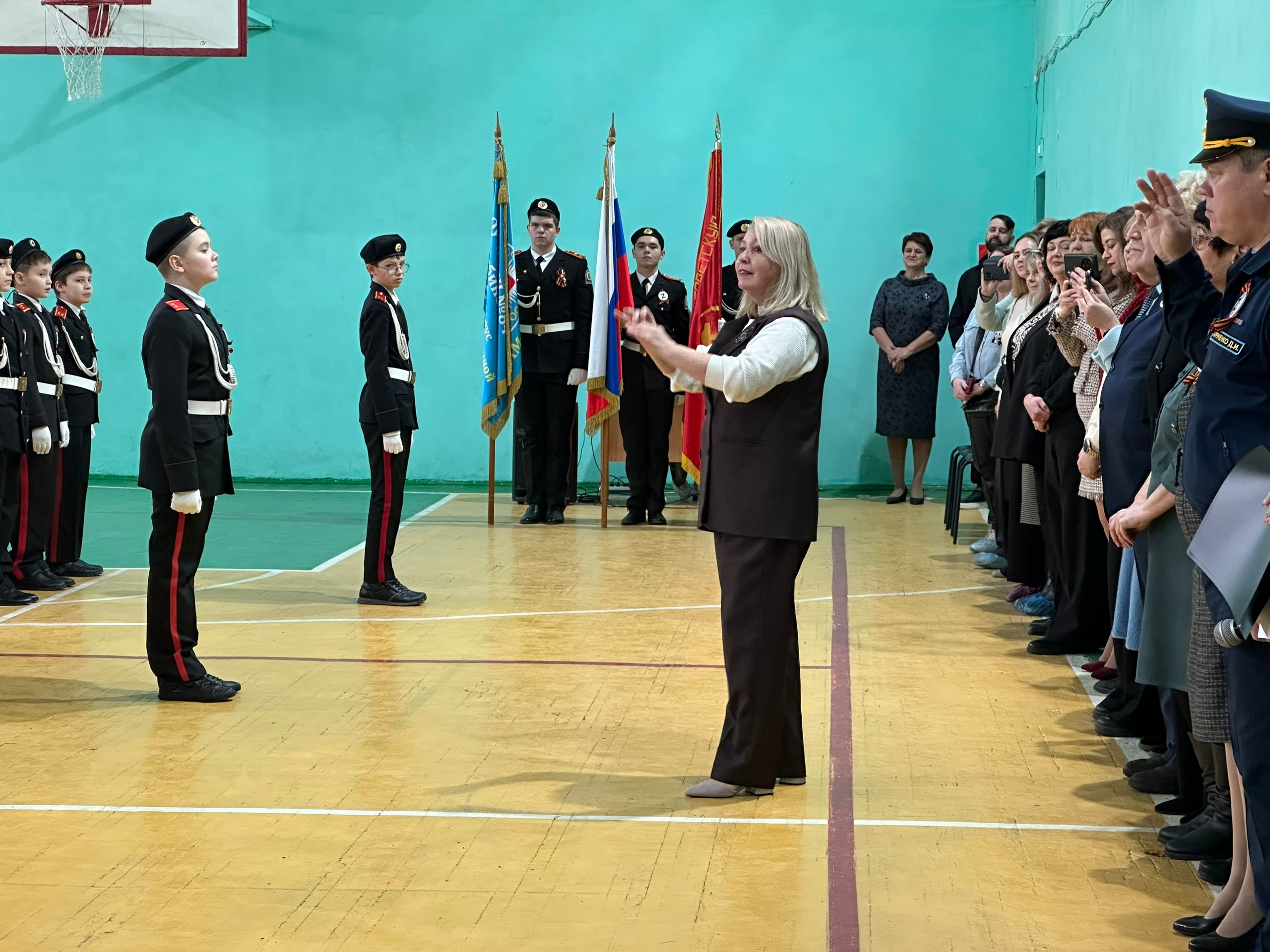 Мероприятие началось с выноса флага Российской Федерации и Знамени кадетского корпуса. В числе почетных гостей присутствовала заместитель главы Администрации Тракторозаводского района Елена Маркова.