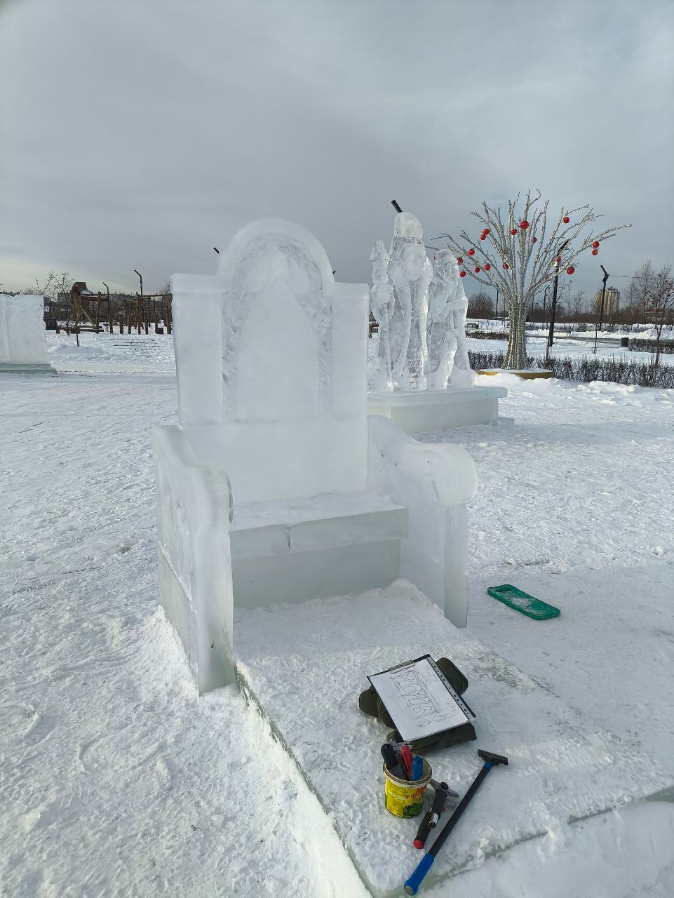 Все ледовые фигуры установлены в соответствии с техническими правилами, что гарантирует их прочность и качество. Установка других фигур не предусмотрена, чтобы сохранить целостность, гармонию композиции и безопасность детей.