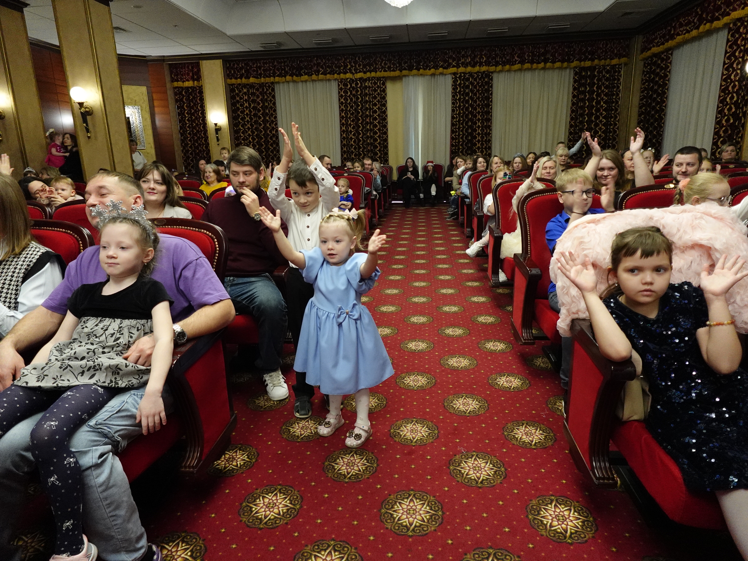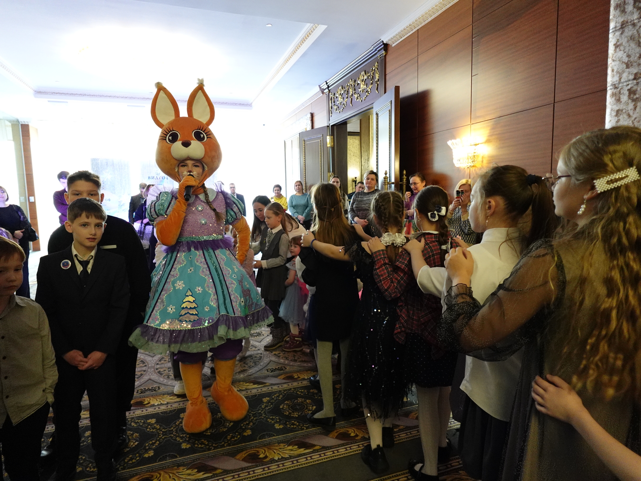 Юных зрителей порадовали выступления артистов совместно с хвостатыми друзьями. После представлений, в фойе ребят встретили настоящие жители леса - красавица лисичка, белочка и мудрый еж. Они провели праздничные игры, устроили зажигательные танцы и вместе с ребятами встретили Деда Мороза и Снегурочку, а после все вместе провели хоровод вокруг пышной и нарядной елки.