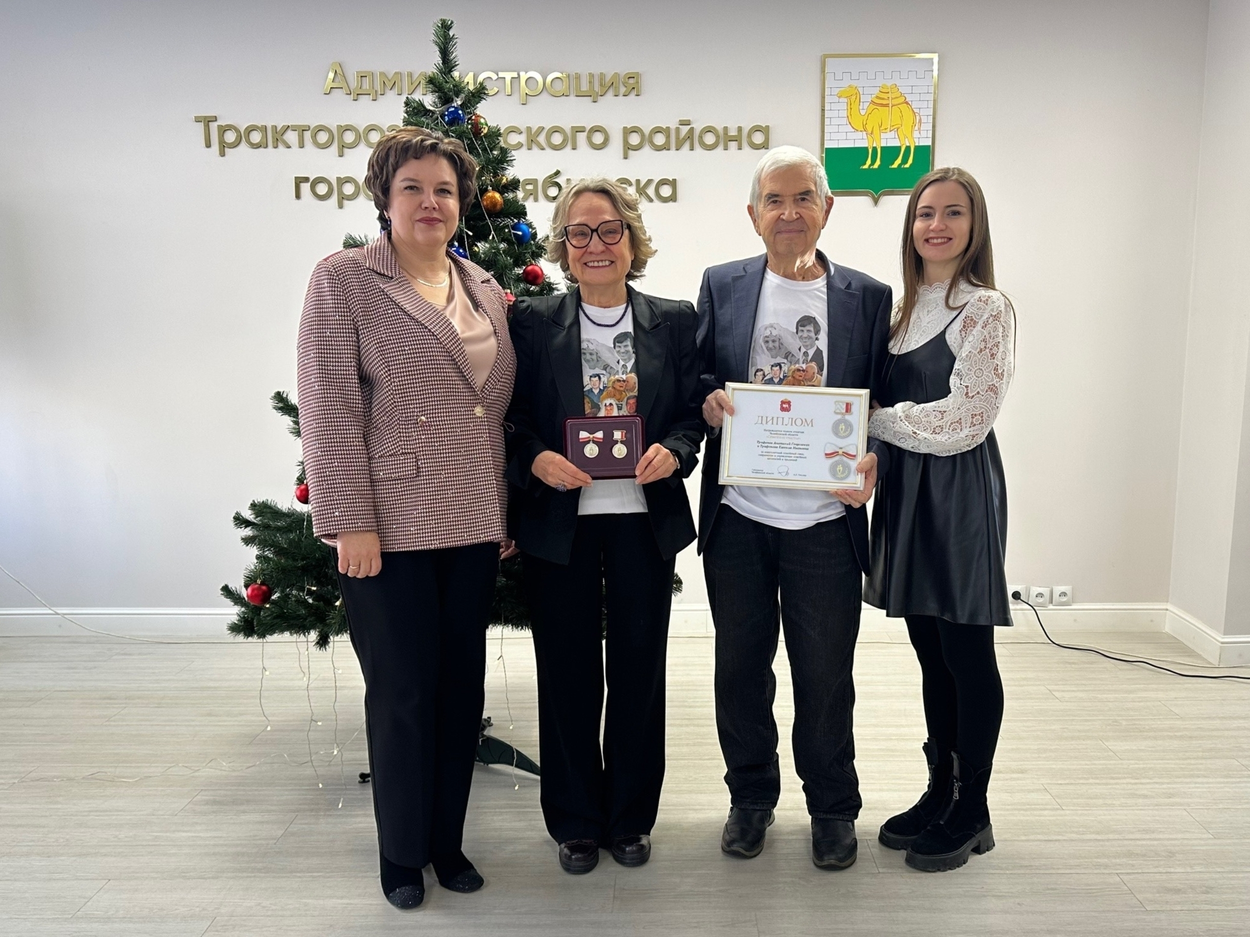 Сегодня 13 супружеских пар, проживших вместе более 50 лет, получили награду в знак их крепкой любви и верности. Приветствовала гостей глава Администрации Тракторозаводского района Татьяна Букреева, которая поздравила с предстоящими праздниками и отметила, что прожить вместе многие годы - непростой ежедневный труд, проходя через который, можно обрести великое счастье.