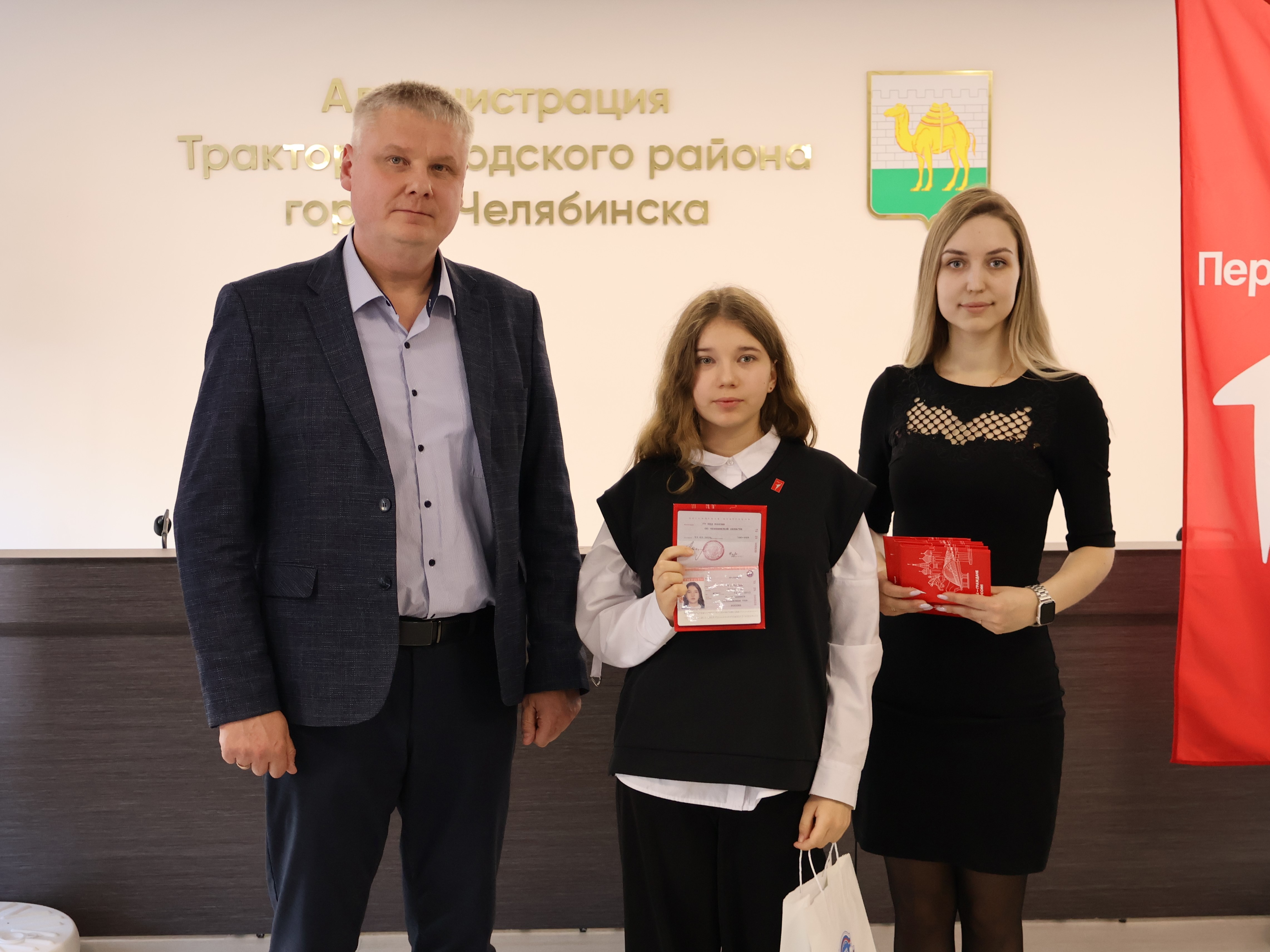 С приветственным словом к собравшимся обратился заместитель глава Администрации Тракторозаводского района Александр Иванычев. Он подчеркнул, что паспорт важно беречь и уважать, ведь вместе с ним появляется личная ответственность каждого за общее будущее.