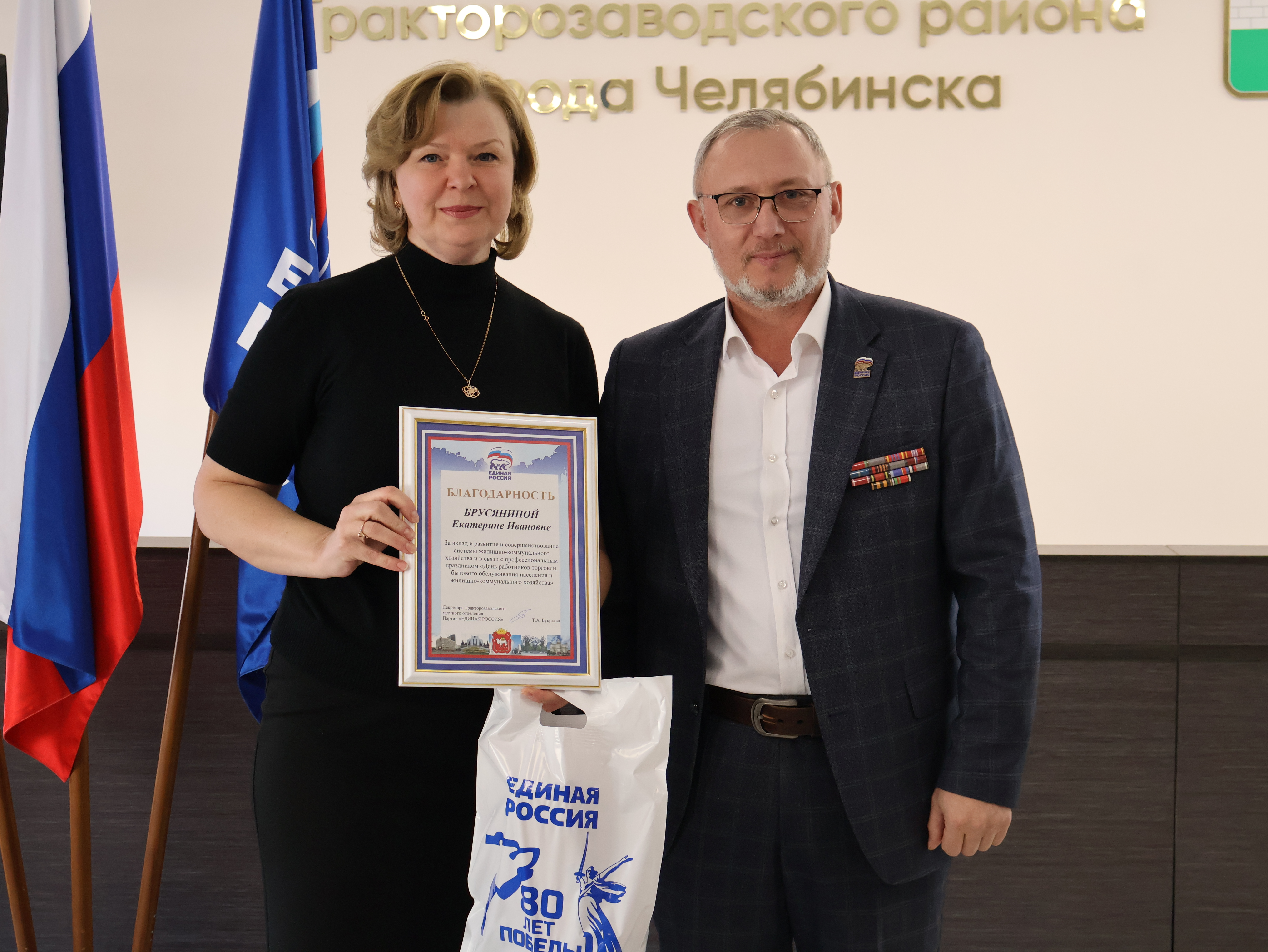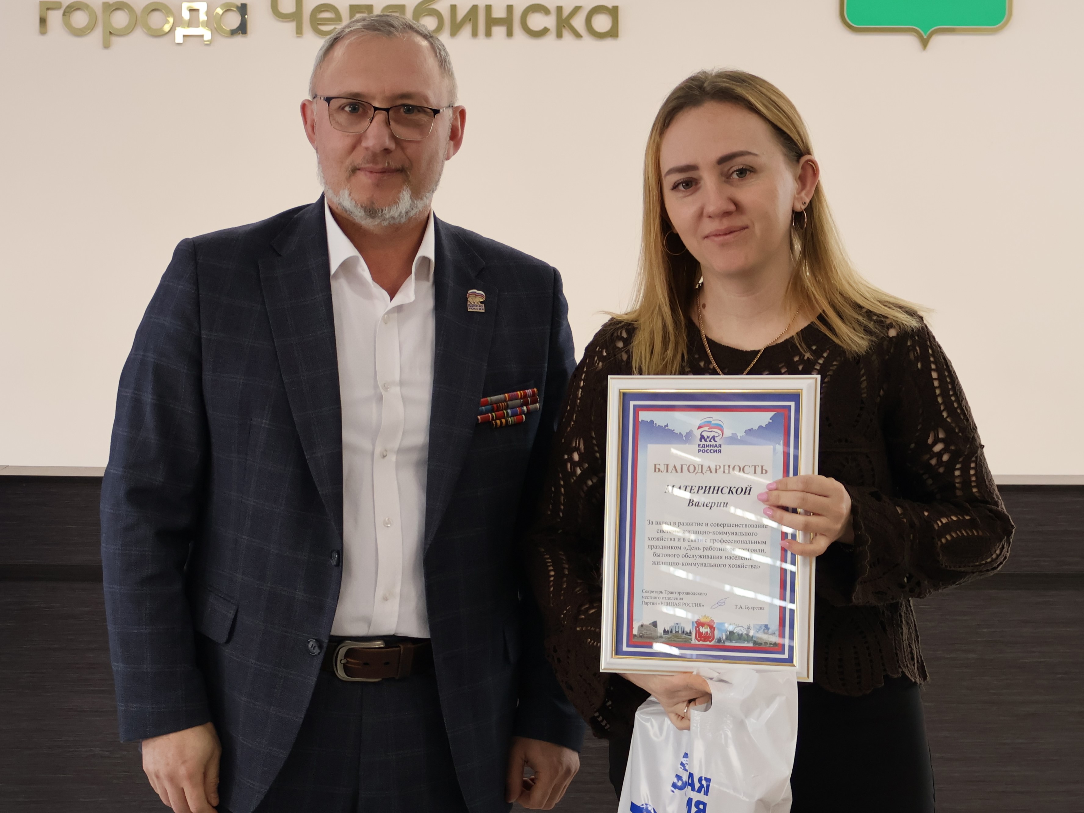За добросовестный труд работникам были вручены Благодарственные письма Администрации города Челябинска и Администрации района. Кроме того, исполнительный секретарь Тракторозаводского местного отделения Партии «ЕДИНАЯ РОССИЯ» Евгений Комиссаров отметил Благодарностями сотрудников, проявивших активность в общественно-политической деятельности.