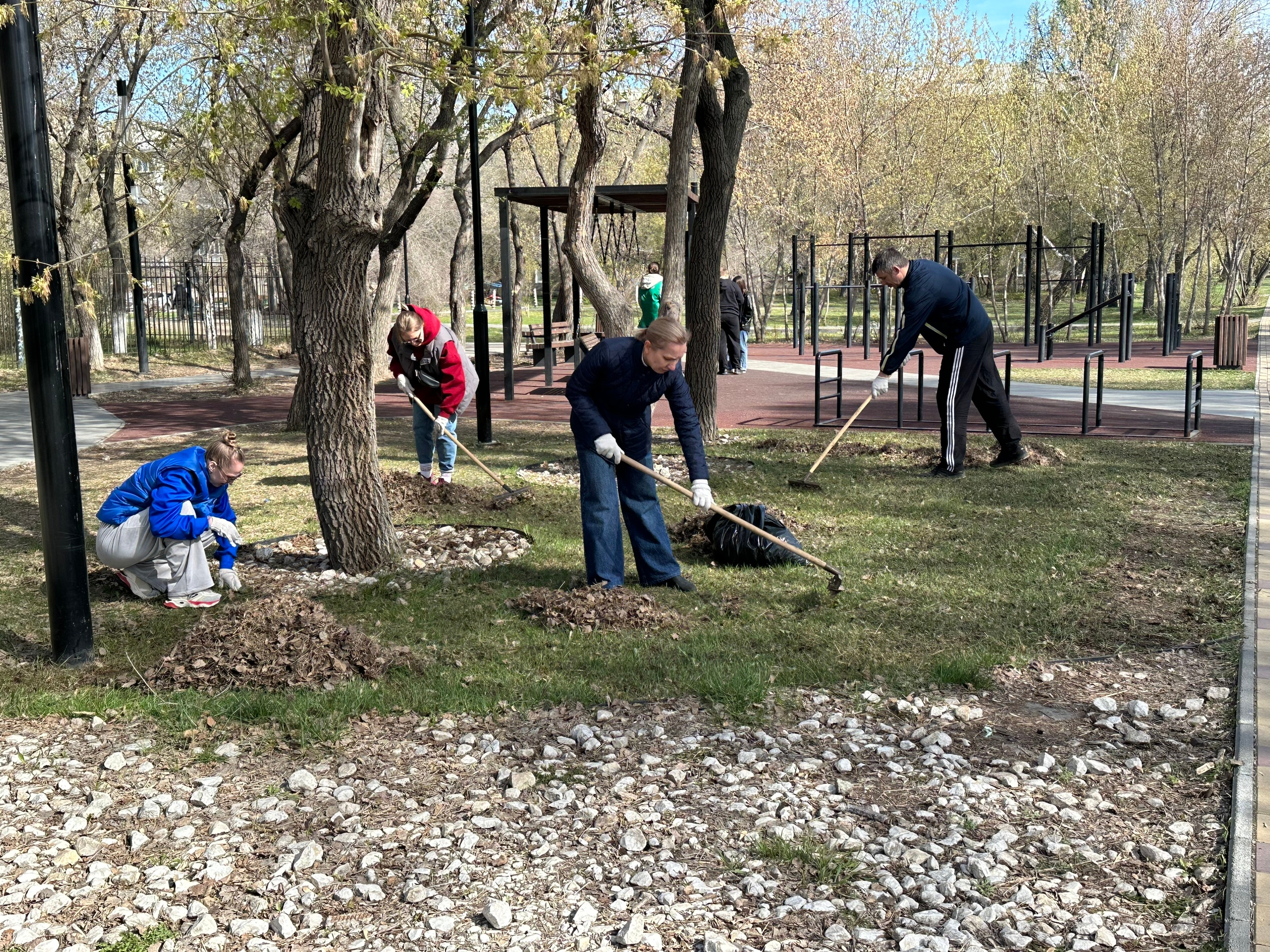 Участники субботника убрали опавшую листву, мусор и подмели дорожки.