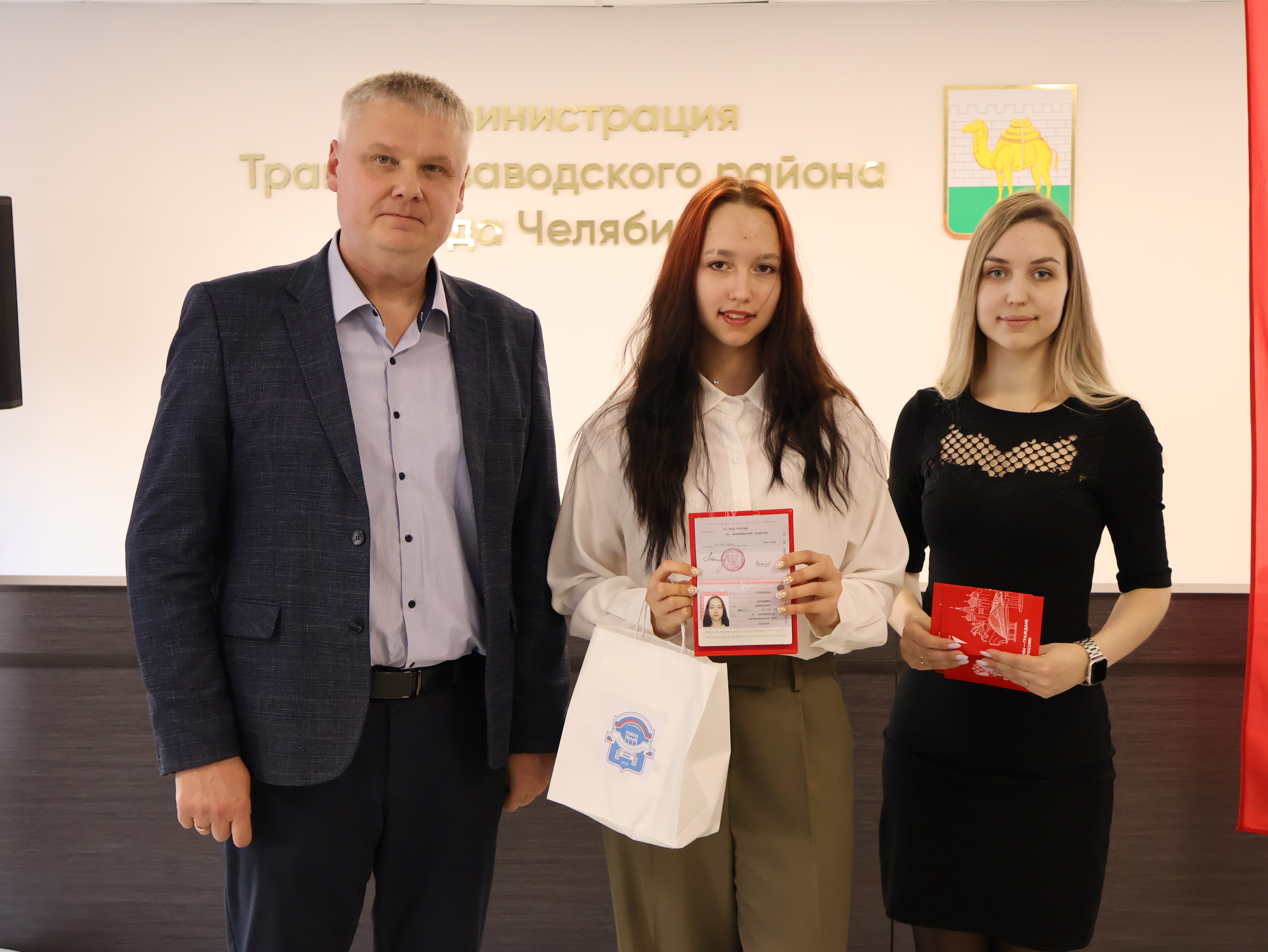 Александр Александрович совместно со специалистом-экспертом отдела паспортно-регистрационной работы отдела по вопросам миграции ОП «Тракторозаводский» УМВД России по г. Челябинску Марией Фатеевой вручил паспорта гражданина РФ и памятные подарки от Администрации района жителям, достигших 14 лет.