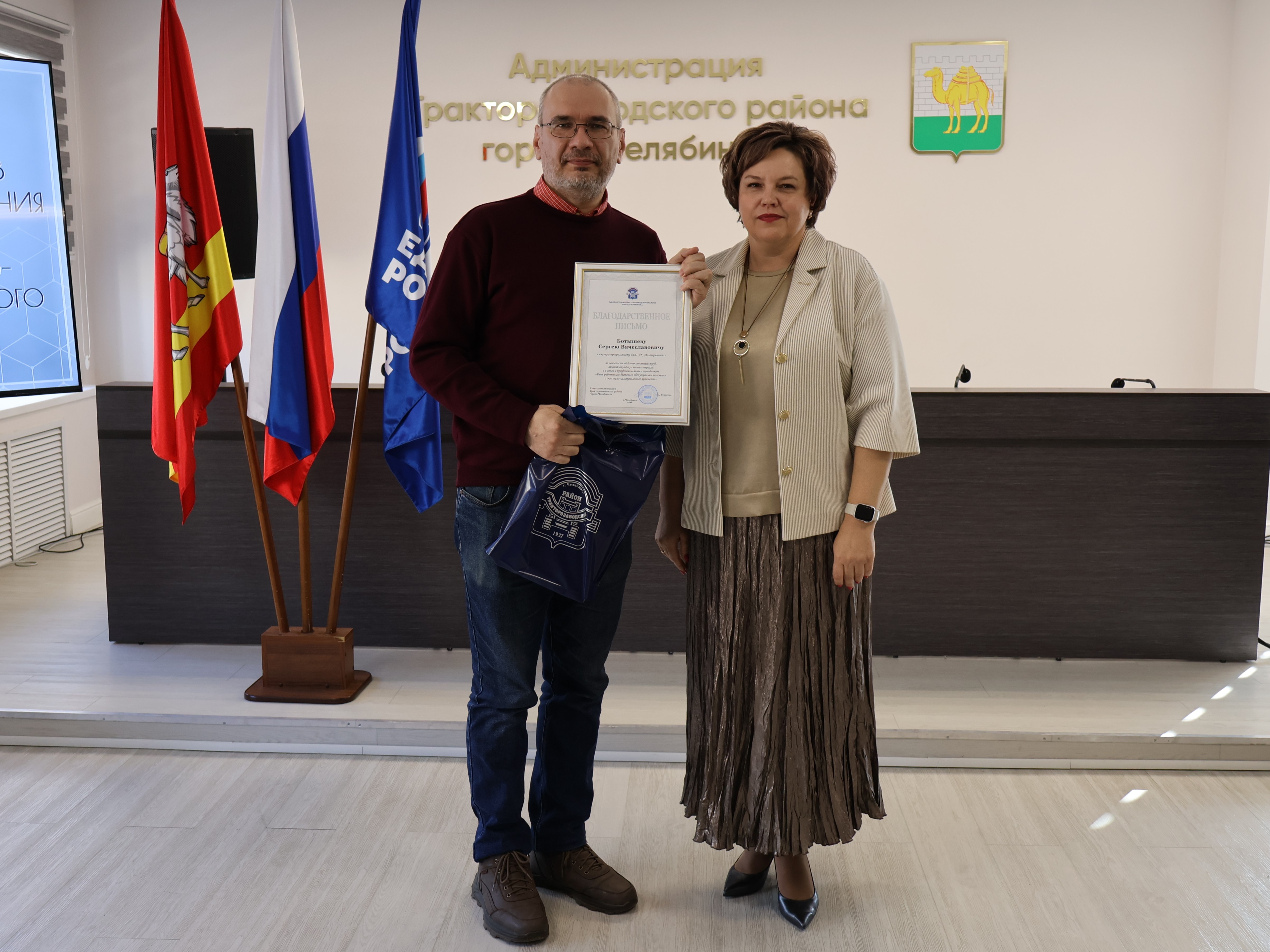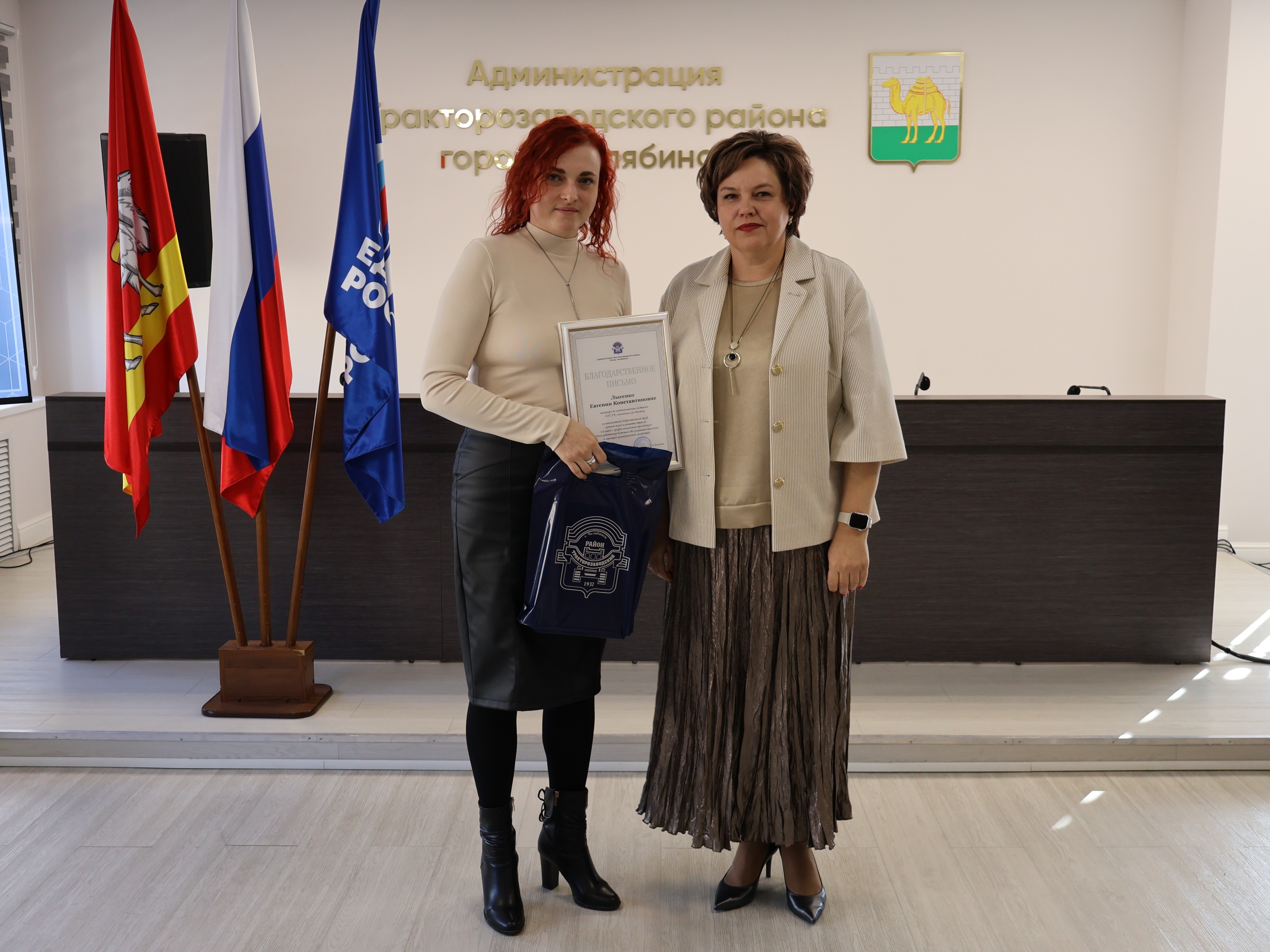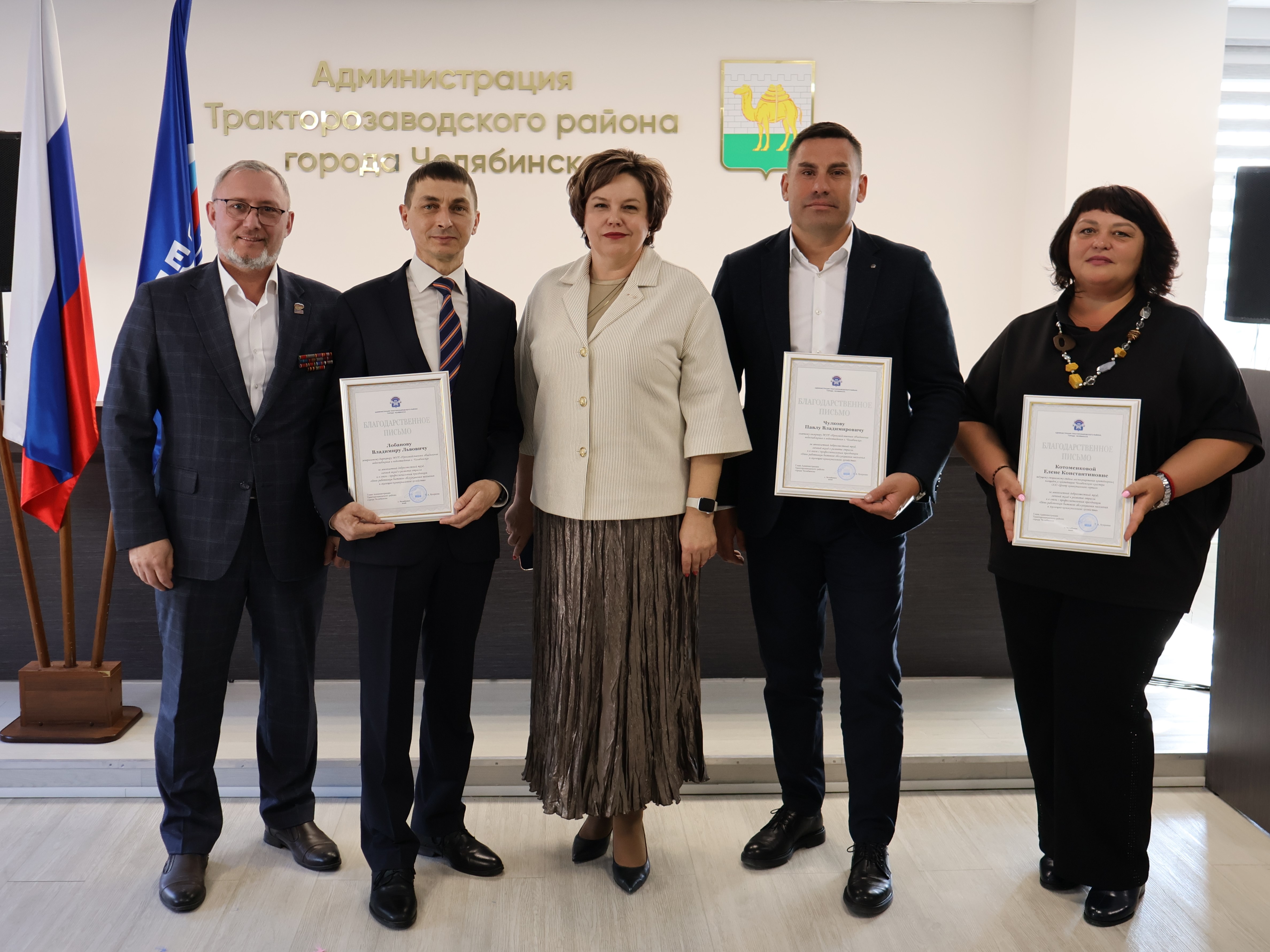 За добросовестный труд работникам были вручены Благодарственные письма Администрации города Челябинска и Администрации района. Кроме того, исполнительный секретарь Тракторозаводского местного отделения Партии «ЕДИНАЯ РОССИЯ» Евгений Комиссаров отметил Благодарностями сотрудников, проявивших активность в общественно-политической деятельности.